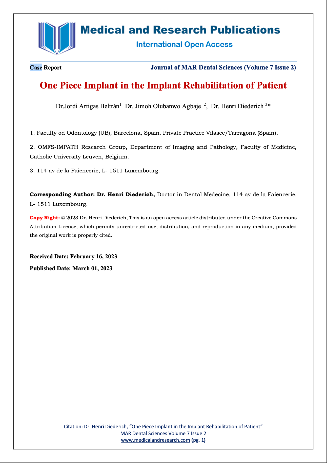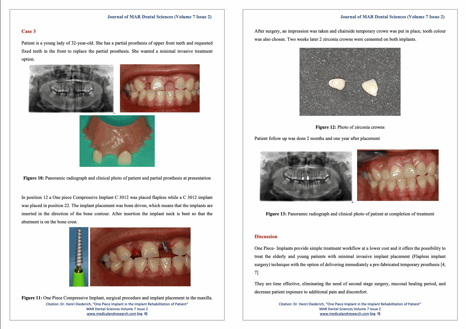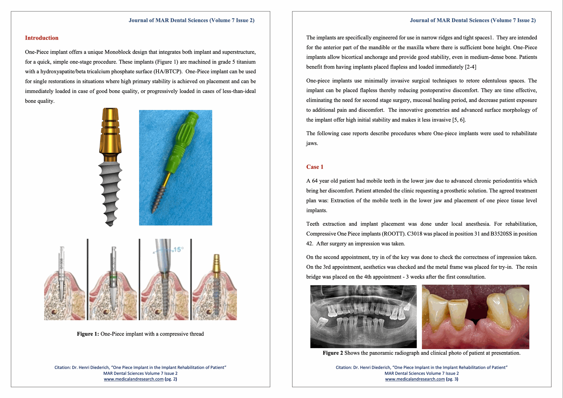 El trabajo presenta el uso de implantes monobloque (One-Piece) en la rehabilitación de pacientes. Estos implantes, hechos de titanio grado 5 con superficie HA/BTCP, integran en una sola pieza el implante y la supraestructura, lo que permite un procedimiento rápido, mínimamente invasivo y, en muchos casos, con carga inmediata.