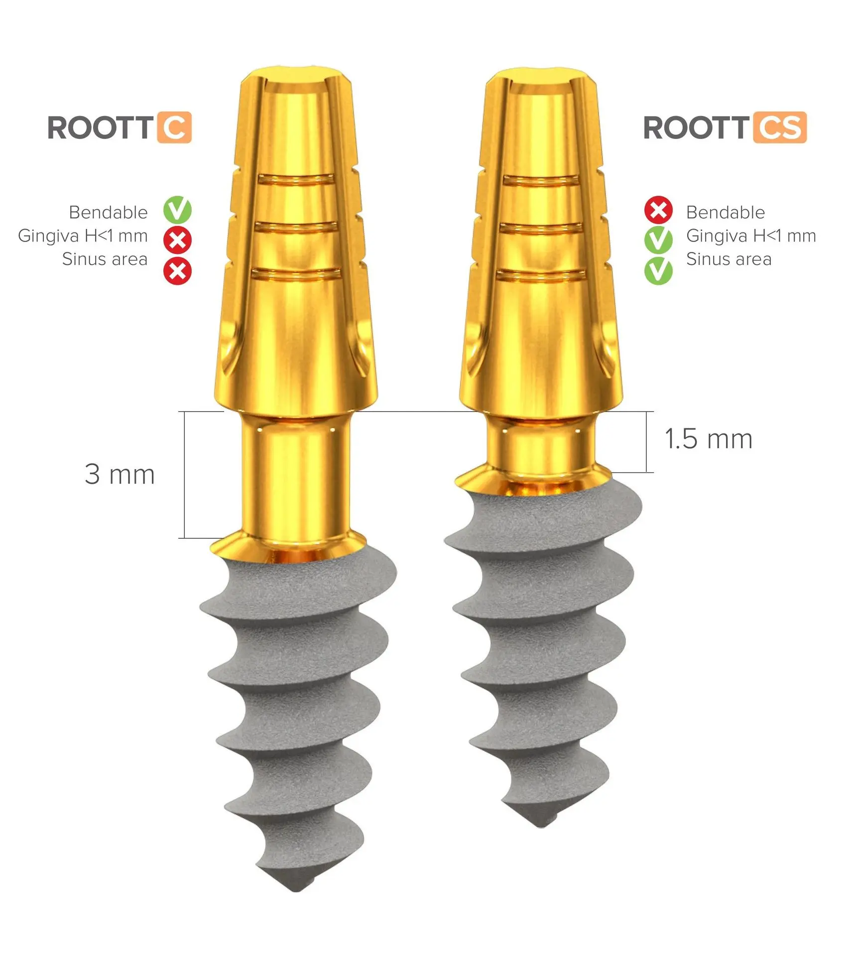 The ROOTT C/CS implant is engineered to integrate surgical stability with a highly adaptable abutment design, optimizing immediate functional results.