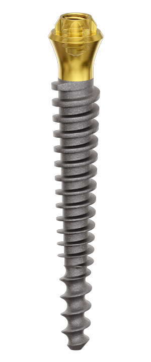 ROOTT P implants are available in Ø3.5 mm and Ø4.5 mm diameters, with lengths from 15 mm to 26 mm. The Integrated Multi Unit Head Design has a 3mm cuff.