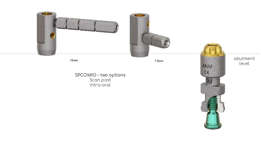 • Enhanced Reference Stability in Edentulous Cases - The SPCOMIO Scanbody, when used with Titanium pins is crucial in edentulous cases for maintaining scan path and positional accuracy across in multiple implants cases.