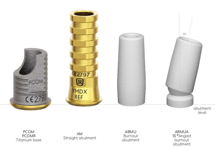 • Prosthetic Flexibility: Custom abutments/frameworks for multi, and full-arch cases. User-friendly design with reliable burn-out.
